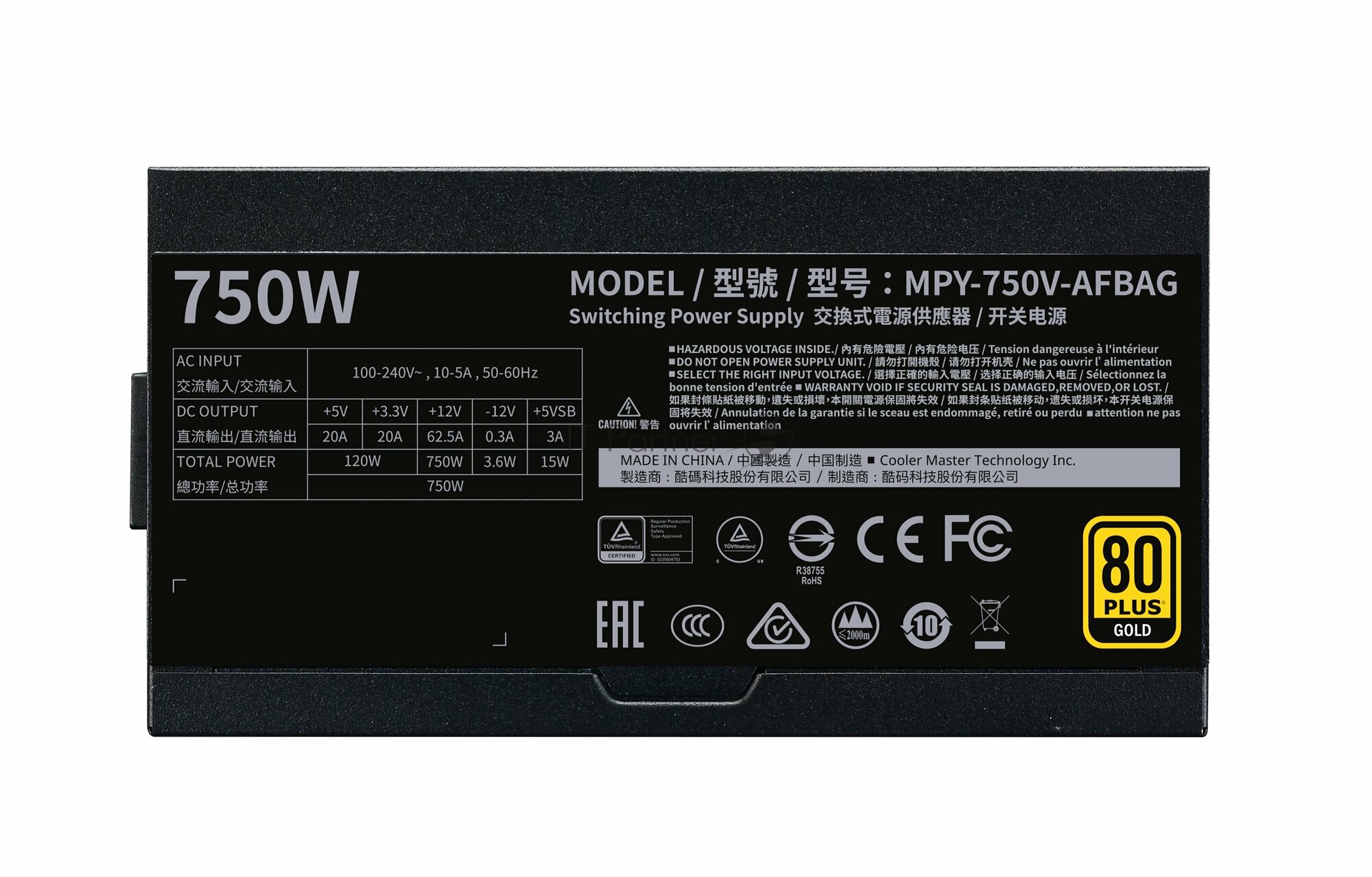 Cooler Master Блок питания 750Вт Cooler Master V750 Gold V2 MPY-750V-AFBAG-EU ATX12V V2.52 (24+4/8+6/8+8pin, вентилятор d135мм) + кабель питания (ret)