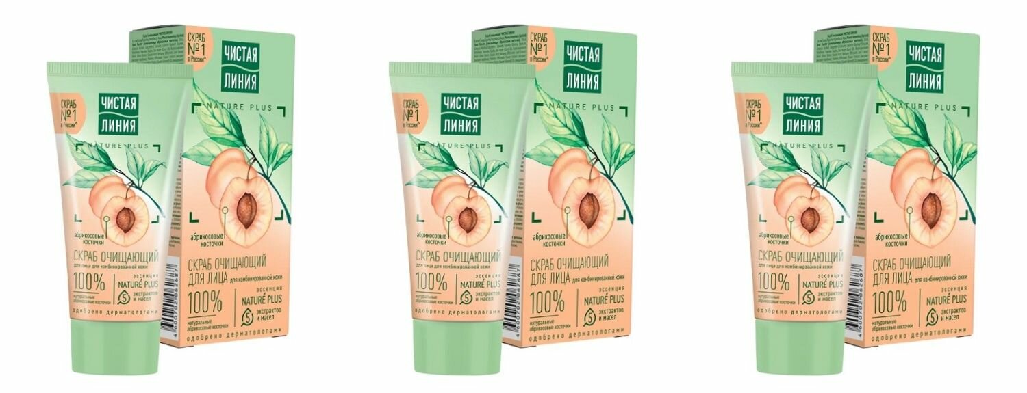 Чистая линия скраб для лица Очищающий Абрикосовые косточки, 50 мл, 3 шт.