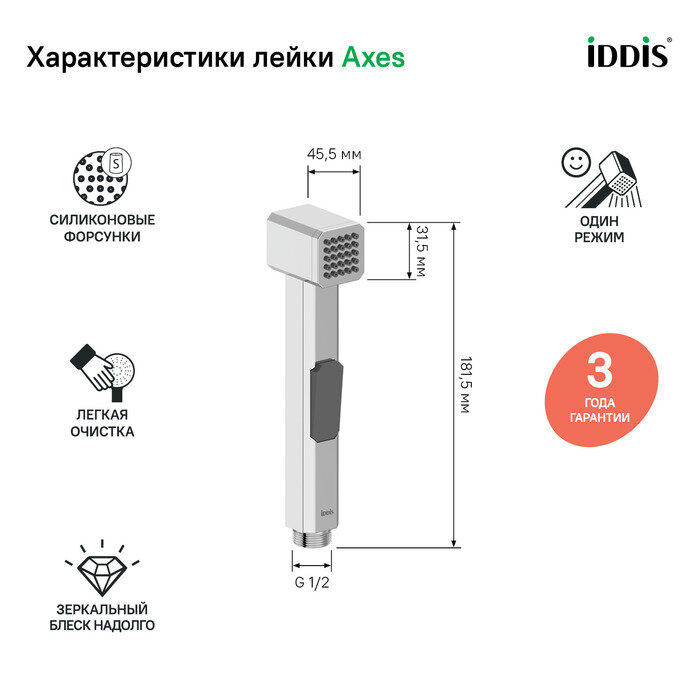 Гигиеническая лейка IDDIS Axes AXE1F1Ci20 глянцевый хром квадратная форма
