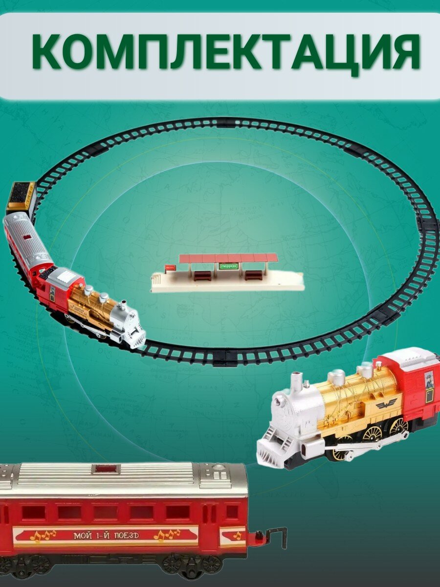 Детская железная дорога PlaySmart "Мой первый поезд" Б0617 свет, звук, дым / 282 см.
