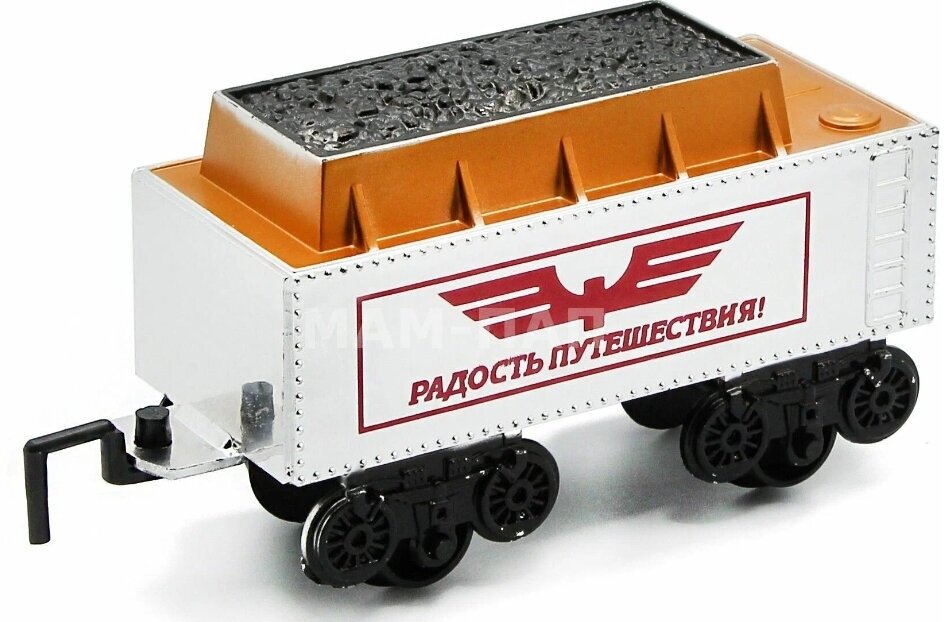 | Подробная комплектация | Локомотив, пассажирский вагон, вагон с углем, железнодорожная платформа рельсы, коробка |