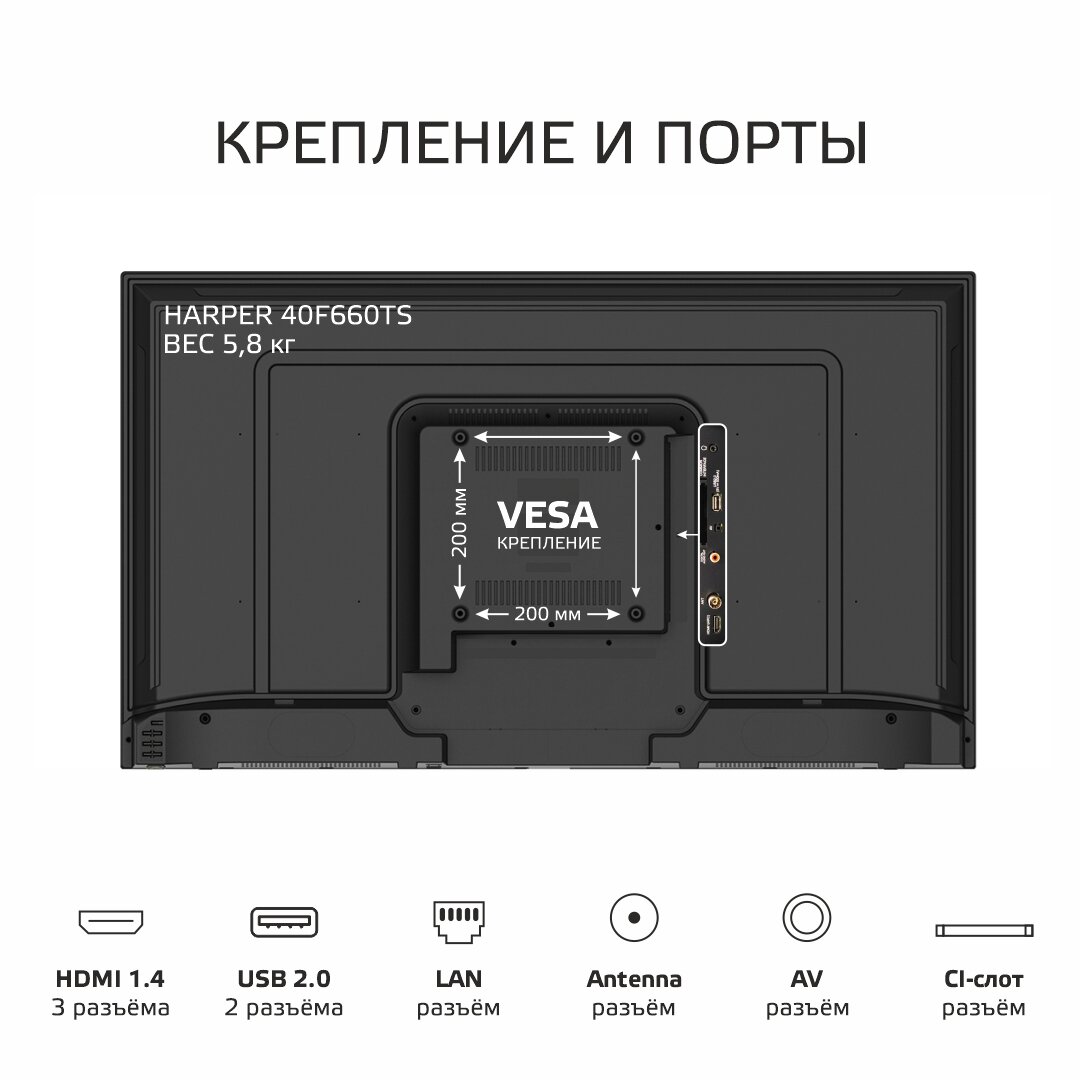 Телевизор 40" Harper 40F660TS (Full HD 1920x1080, Smart TV) черный