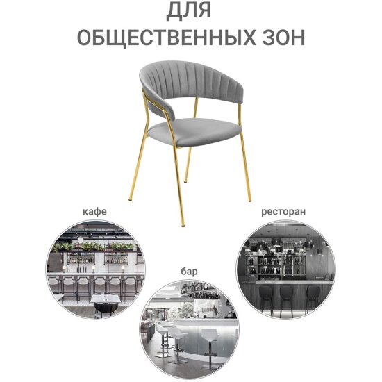 СохранитьСтул для кухни мягкий велюр со спинкой и подлокотниками Turin серый с золотыми ножками интересное: