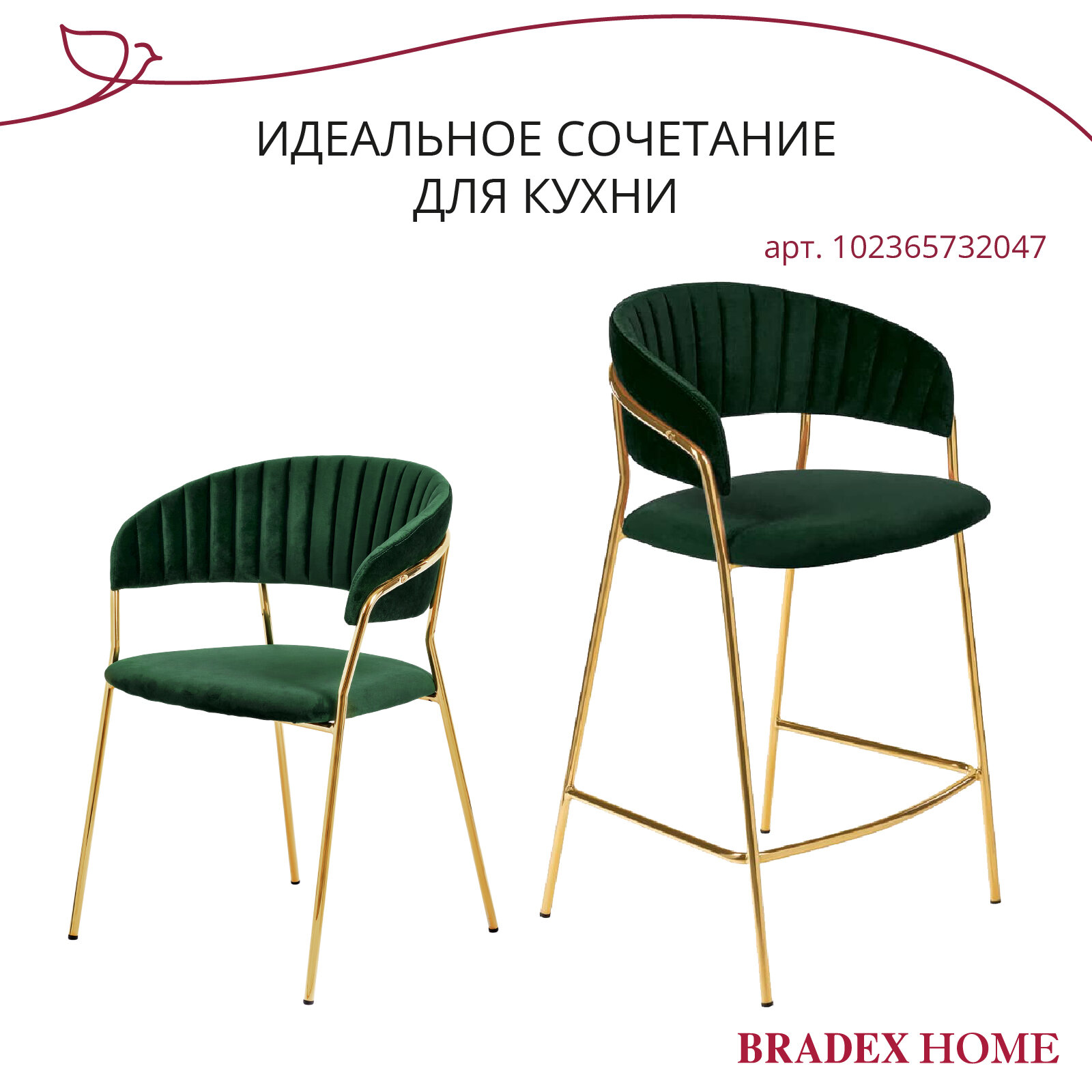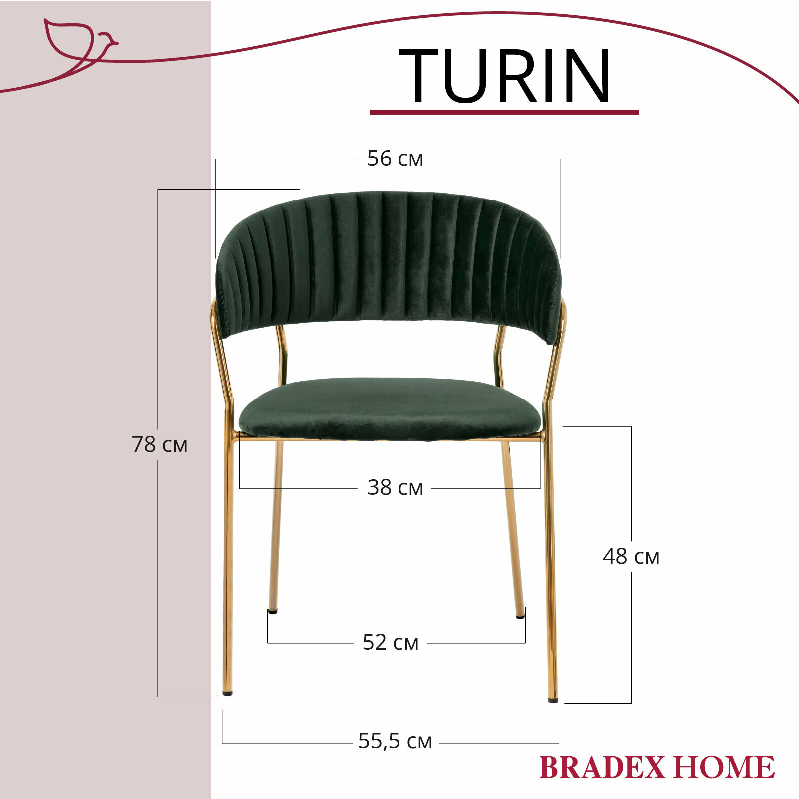 Стул полубарный Bradex Turin зеленый с золотыми ножками (FR 0908)
