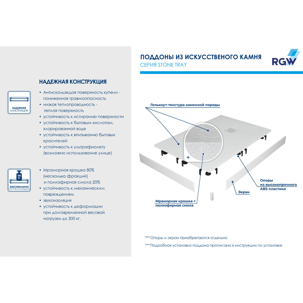 Душевой поддон RGW ST-W Stone Tray 80x160 интересное: