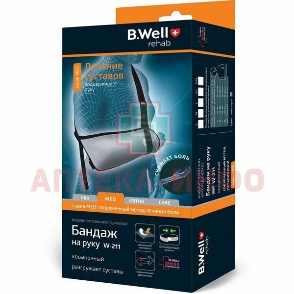 Купить Бандаж B.Well на руку косыночный с 2-мя ремнями, серия MED, W-211 М, Темно-серый