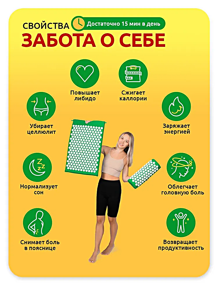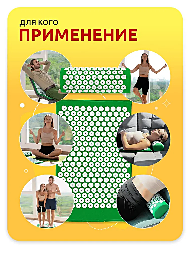 Аппликатор Кузнецова массажный коврик для кровообращения от боли в спине, шеи, нормализует сон, Зеленый интересное: