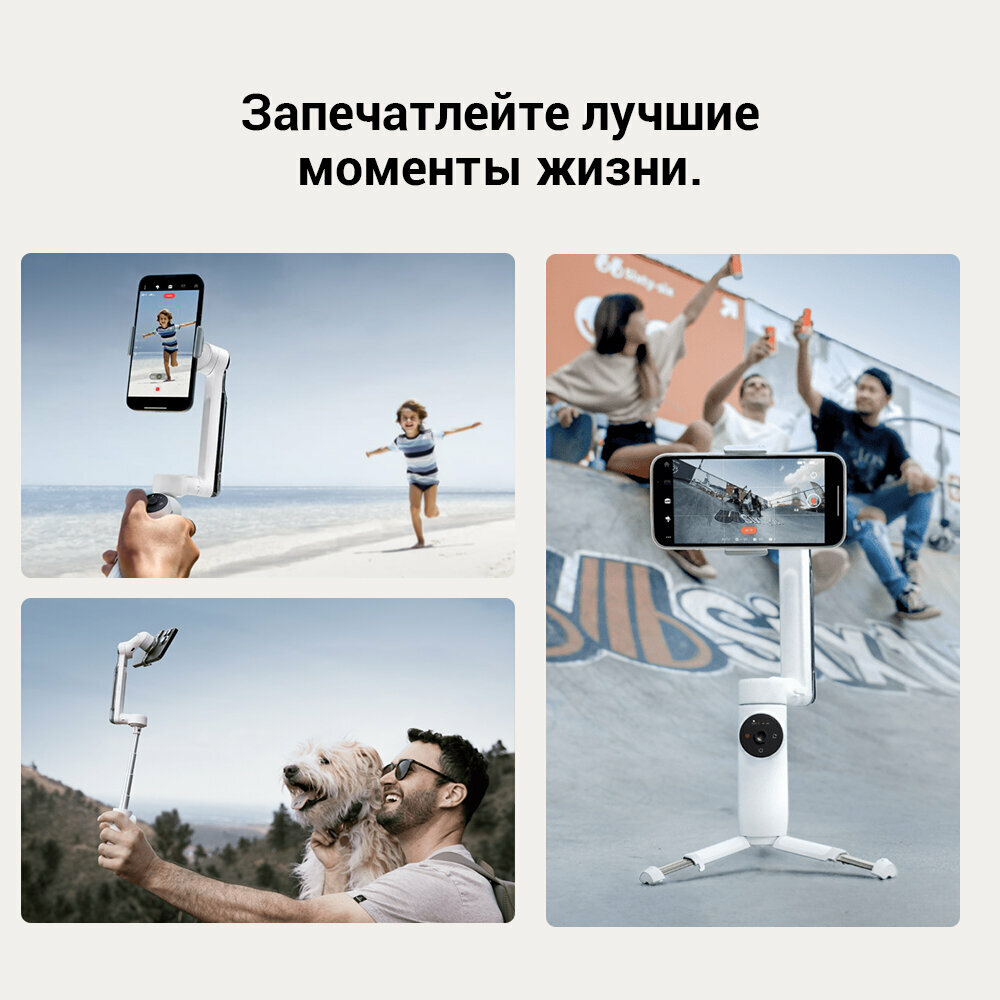 Из плюсов: - удобное и понятное приложение из фишек которого возможно создавать 3д панорамные снимки (чего не предлагают другие модели) таймшифт режим порадовал и долли зум (но больше так поиграться) в остальном со своей функцией справляется; - удобная резиновая накладка на ручку - мешочек для транспортировки - съемное и надежное крепление для телефона - можно использовать как повербанк для зарядки телефона - встроенный мини-штатив, что бывает полезно |