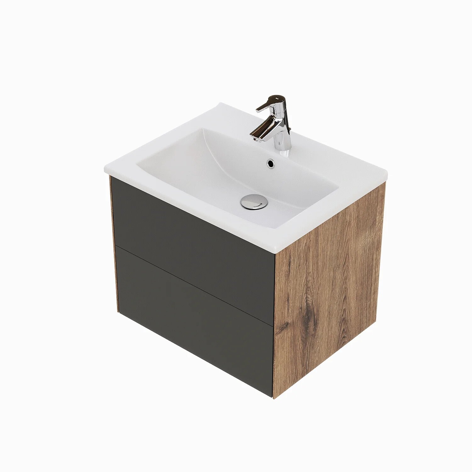Купить Тумба под раковину AQUATON Сохо 60 1A258001AJA00 588x455x482 подвесная, 2 ящ., графит/дуб веллингтон