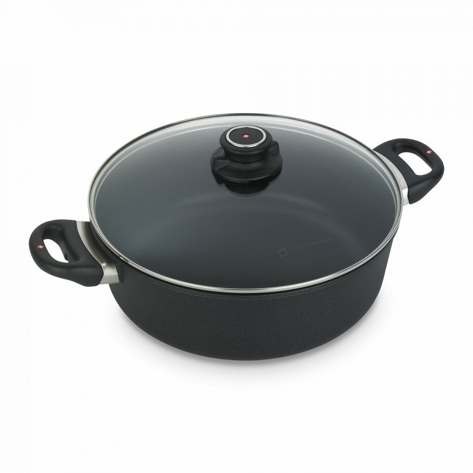 Алюминиевый сотейник c алмазным покрытием, стеклянной крышкой и двумя ручками, 5.3 л, 28 см, Черный Swiss Diamond XD Classic+ Induction