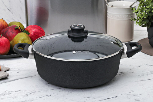 Алюминиевый сотейник c алмазным покрытием, стеклянной крышкой и двумя ручками, 5.3 л, 28 см, Черный Swiss Diamond XD Classic+ Induction