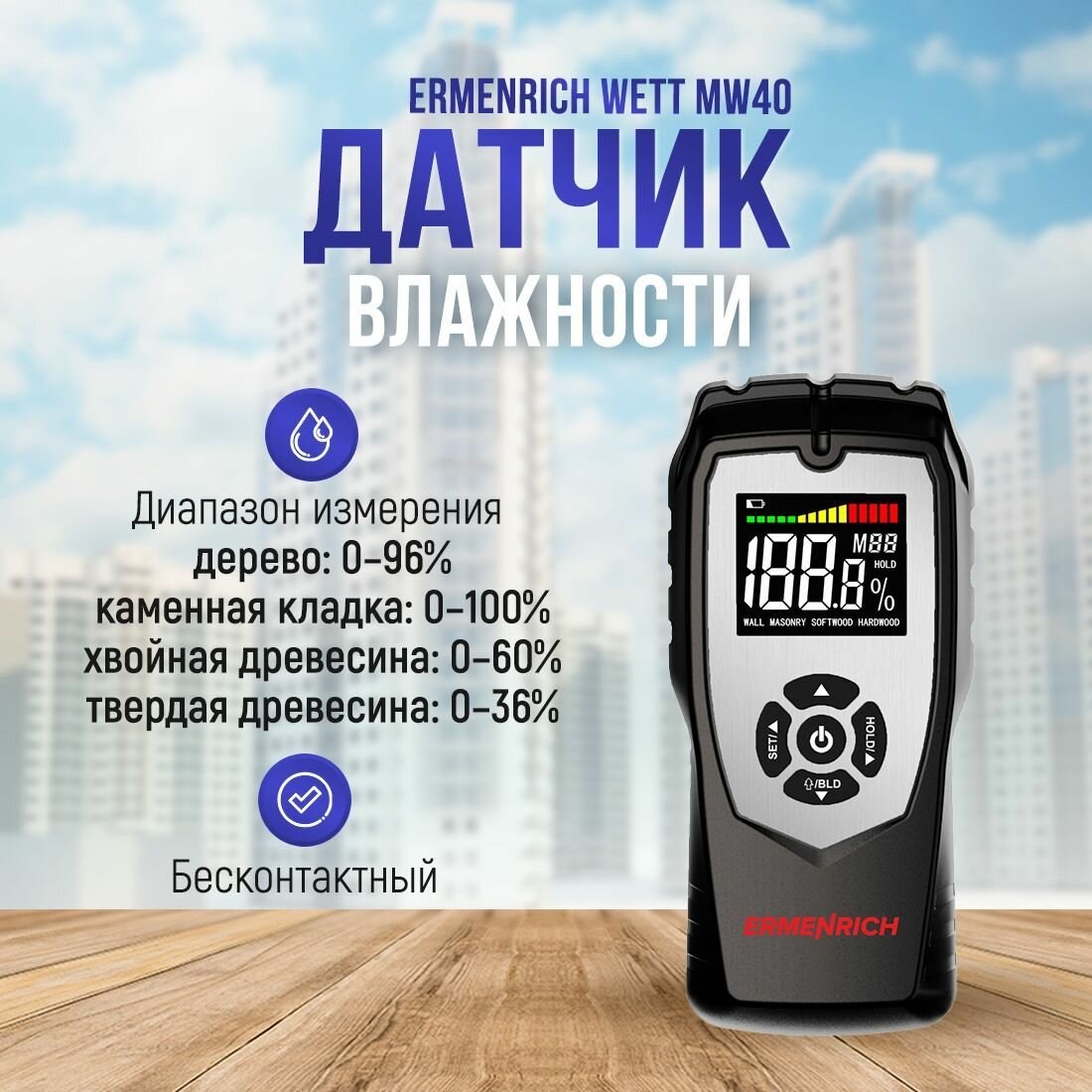 Ниже Вы можете прочитать отзывы на Датчик влажности Ermenrich Wett MW40, ознакомится с подробными характеристиками, посмотреть интересные обзоры и фотографии на Датчик влажности Ermenrich Wett MW40.