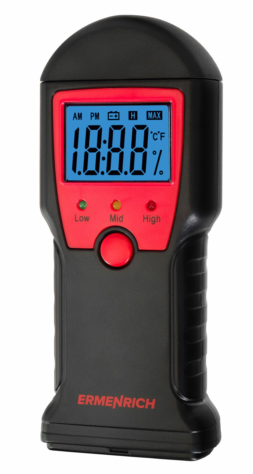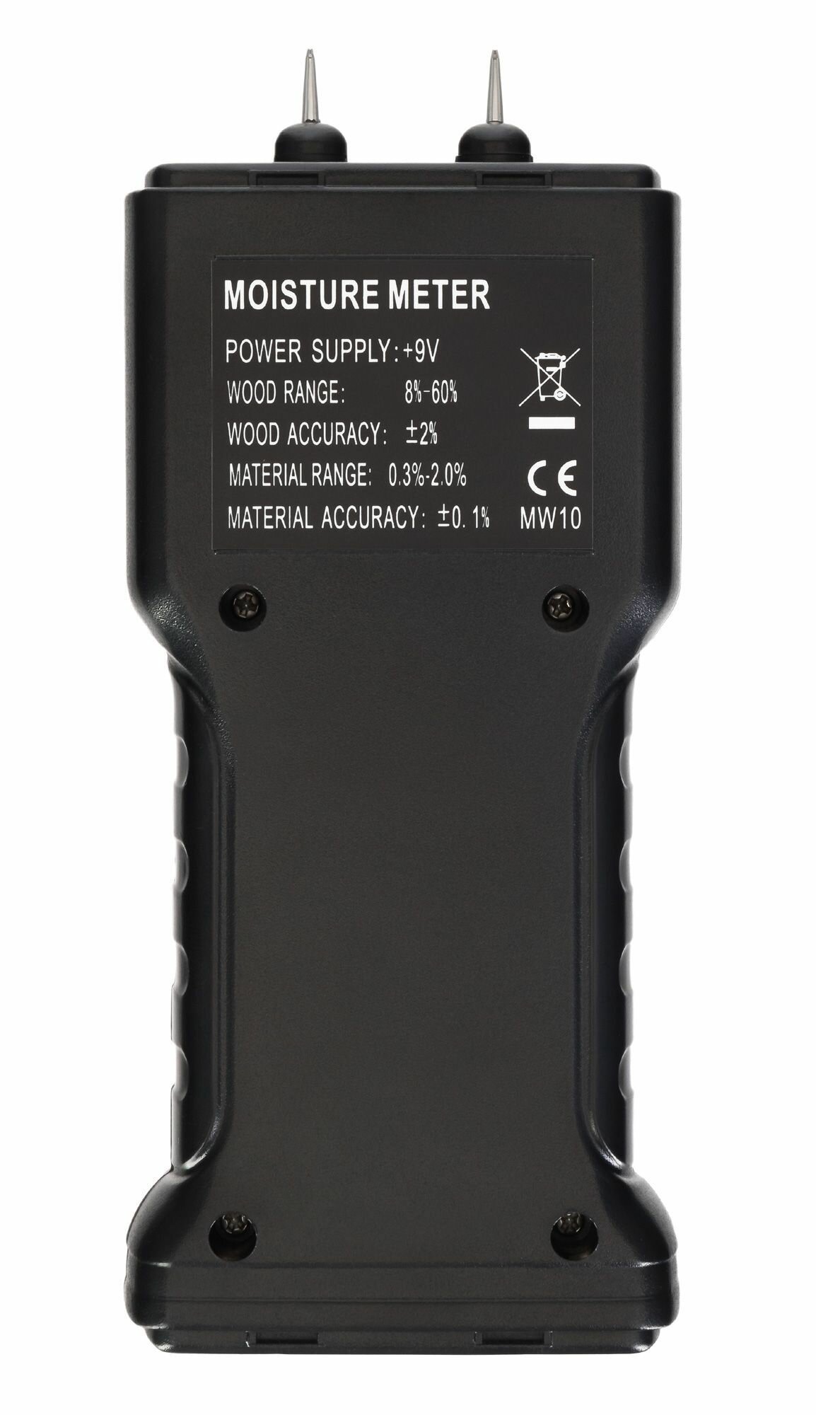 | Дополнительная информация | Два игольчатых сенсора, измеряющих влажность материалов Работает с древесиной и со строительными материалами (бетоном, штукатуркой и проч.) Встроенный термометр для измерения температуры в °C или °F Экран с подсветкой, светодиодные уведомления об уровне влажности Питание от батарейки, функция автоотключения, портативное исполнение корпуса |