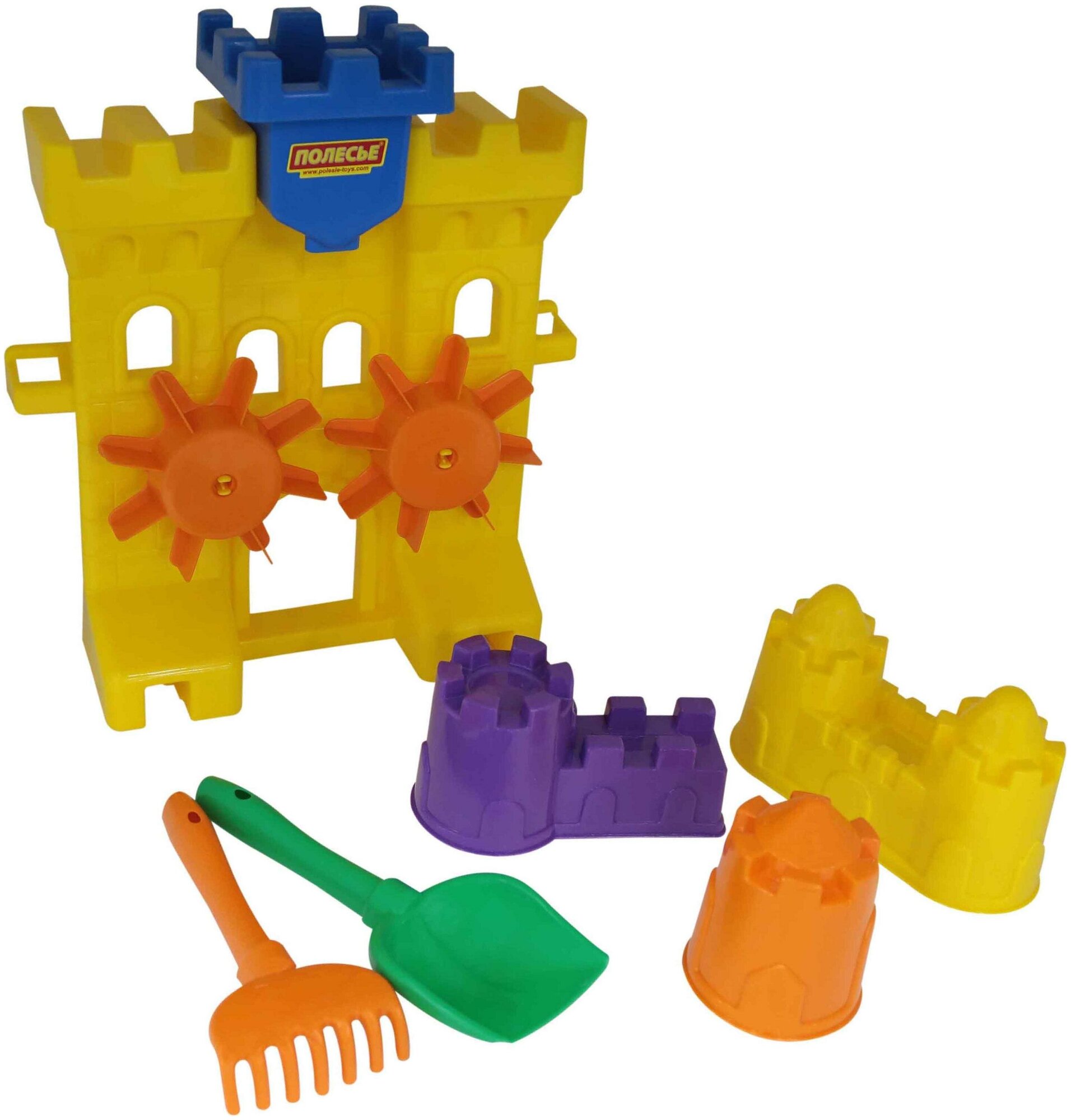 Купить Набор д/песочницы полесье №466: песочная мельница Крепость, лопатка №5, грабельки №5, формочки (замок мост + замок башня + замок стена с двумя баш П-45102