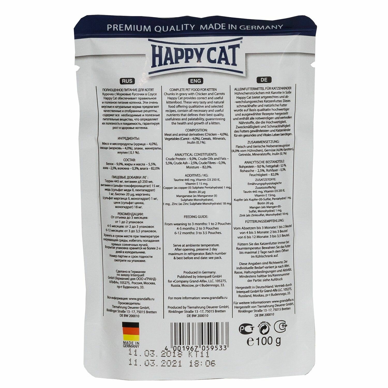 Корм для котят Happy Cat с курицей и с морковью 100 г (кусочки в соусе)