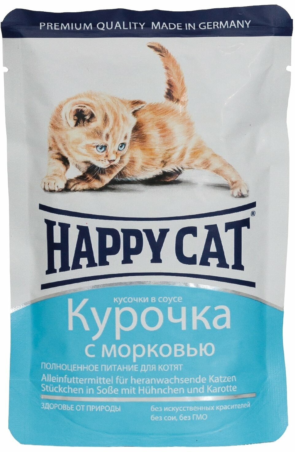 Купить HAPPY CAT KITTEN пауч консервы для котят кусочки в соусе курочка с морковью 24х100г