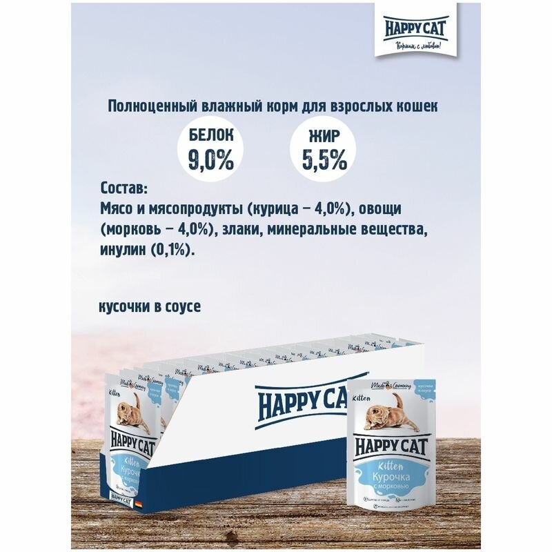 Влажный корм для котят Happy Cat с курицей, с морковью 10 шт. х 100 г (кусочки в соусе)