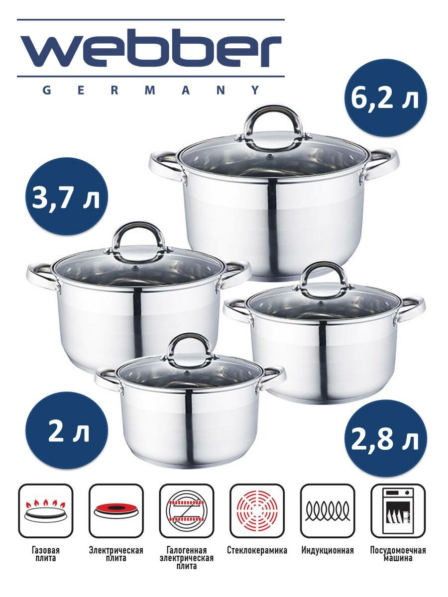 Набор из нержавеющей стали (WEBBER BE-339/8 Набор посуды 8 предметов) интересное:
