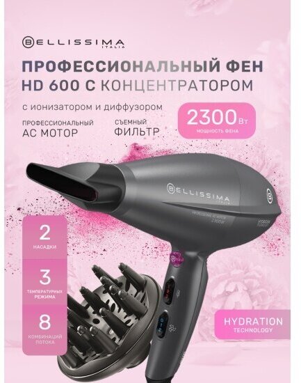 Купить Фен Bellissima HD 600 АС мотор 2300 Вт, керамика, турмалин