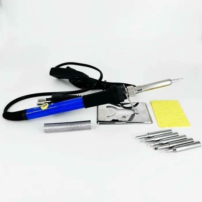 Купить Паяльник с регулировкой температуры / керамический нагреватель синий с набором жал 9 предметов