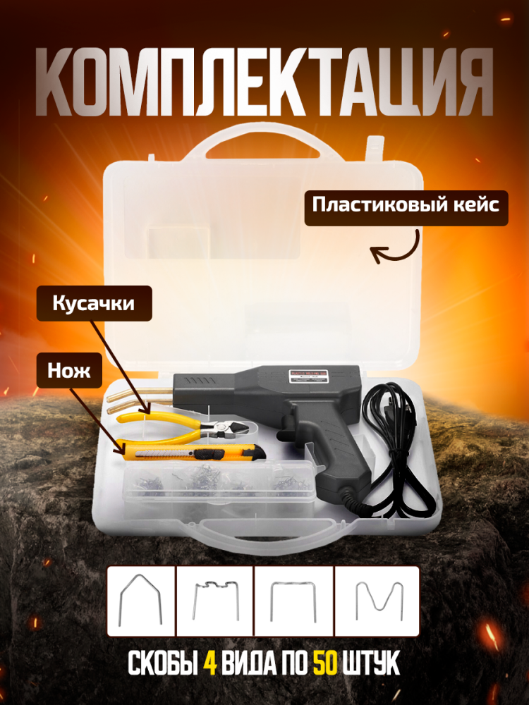 Купить Паяльник для пластика 400 градусов пластиковый кейс нож кусачки 200 скоб