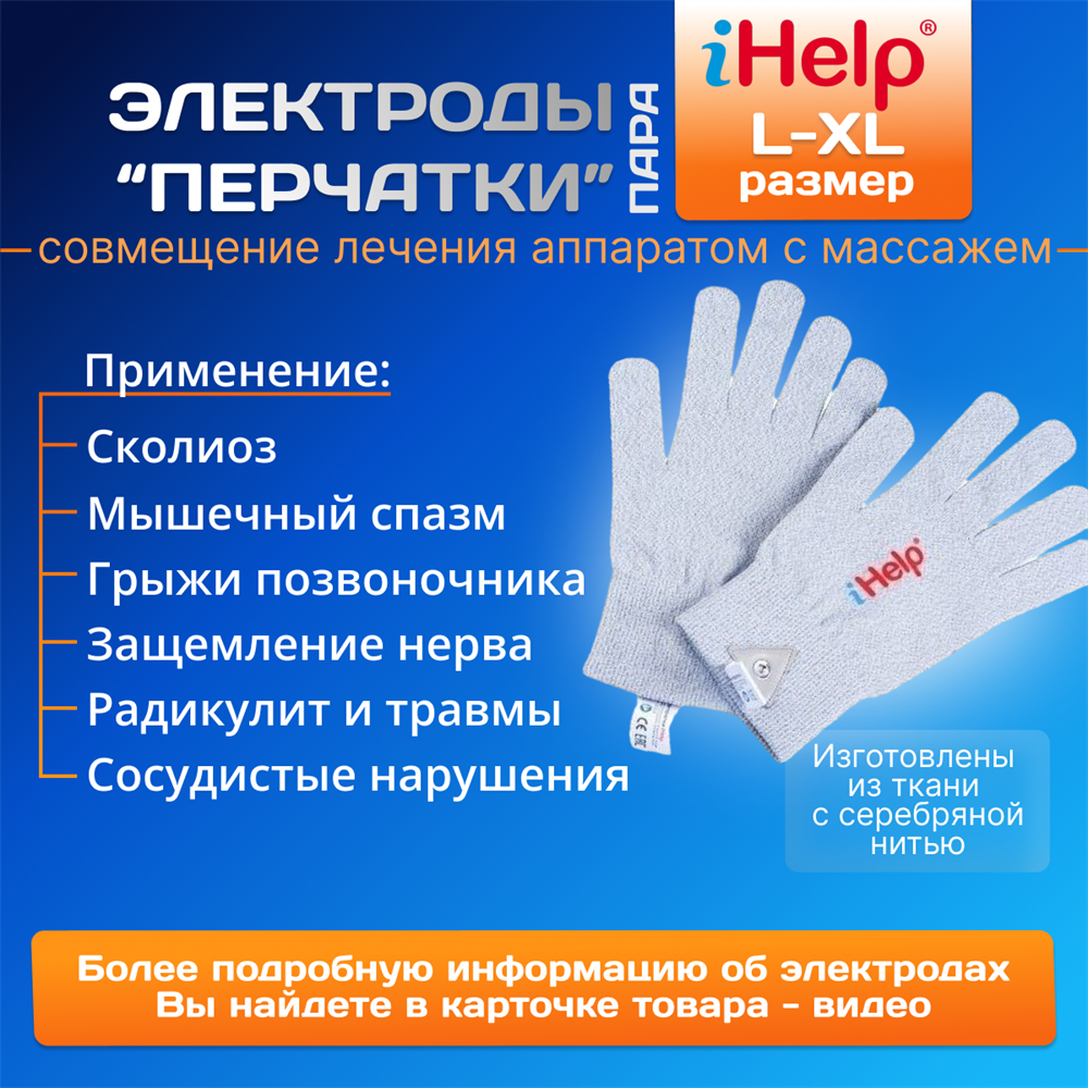 Купить Электроды iHelp "Перчатки" (L) для Нейродэнс-ПКМ, Биотэнс, Меркурий, Скэнар, Акупульс, Стимул, Шубоши, Орион, Эсма, Меридиан, Миоток, Cefar