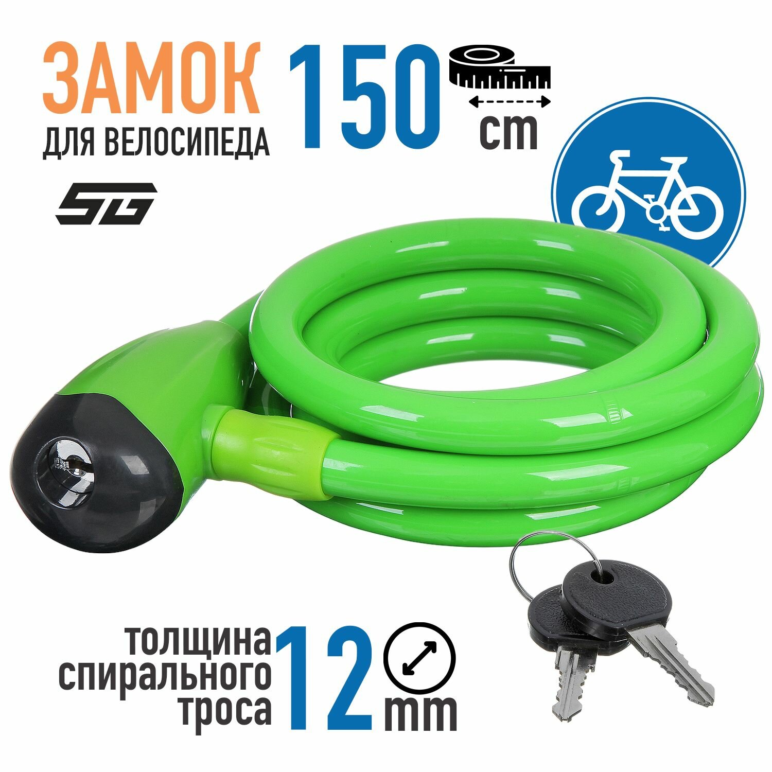 Купить Замок, трос спиральный, с ключом диам.12х150см STG