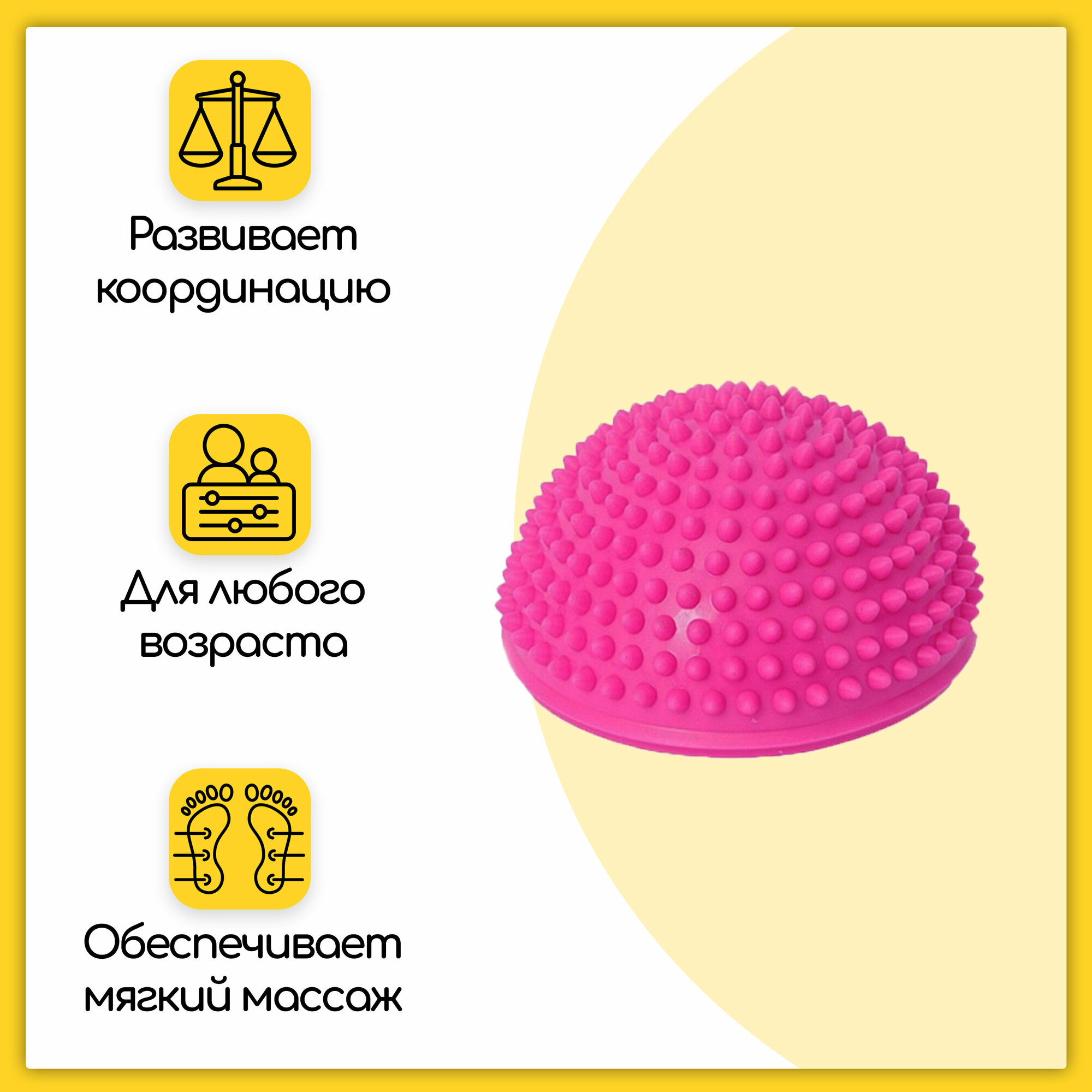 Полусфера для массажа ступней, ПВХ, Ø – 16 см, желтая