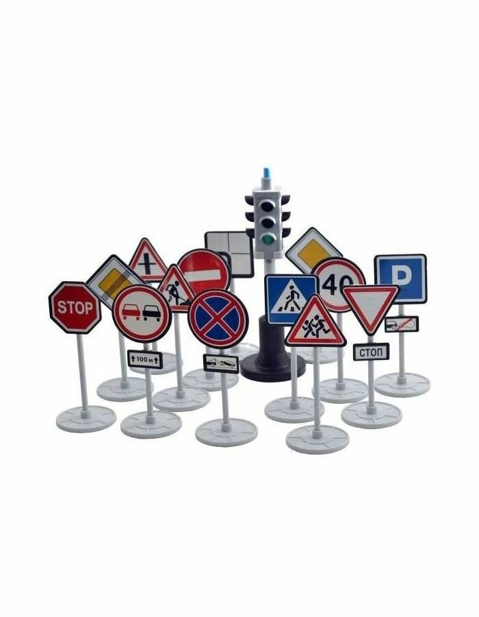 | Плюсы: | Качественные знаки с хорошими липкими наклейками, удобным размером и основанием знаков и светофора с разборной подставкой из пластика. |