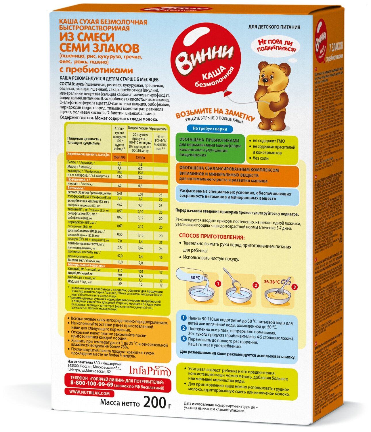 Каша Винни безмолочная 7 злаков с пребиотиками, с 6 месяцев, 200 г интересное: