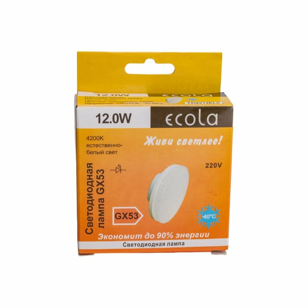 Лампа светодиодная GX53, 12 Вт, 220 В, таблетка, 4200 К, свет нейтральный белый, Ecola, LED