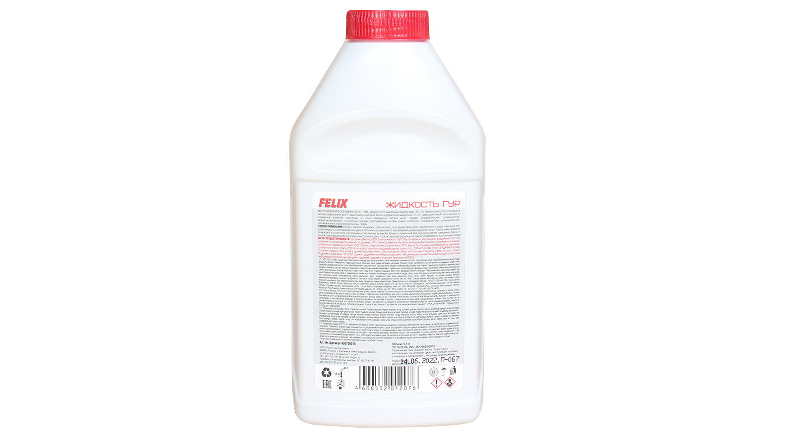 | Дополнительная информация | комплектация: жидкость для гидроусилителя руля / жидкость для ГУР универсальная (масло гидравлическое) FELIX Масло в ГУР 1 л.; не хранить в помещениях с повышенной влажностью. |