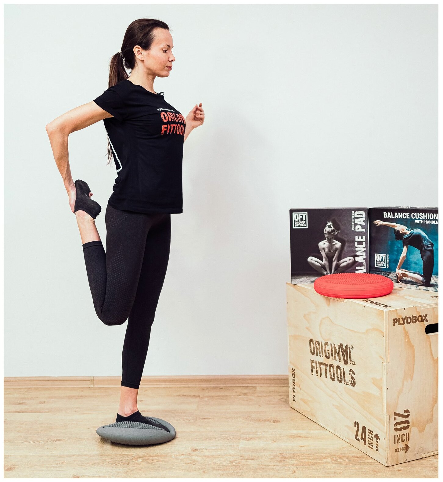 Массажно-балансировочная подушка Original Fit.tools с ручкой серая