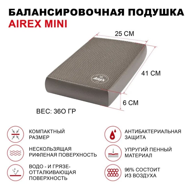 Балансировочная подушка AIREX Balance-pad Mini, 41х25х6 см., цвет серый