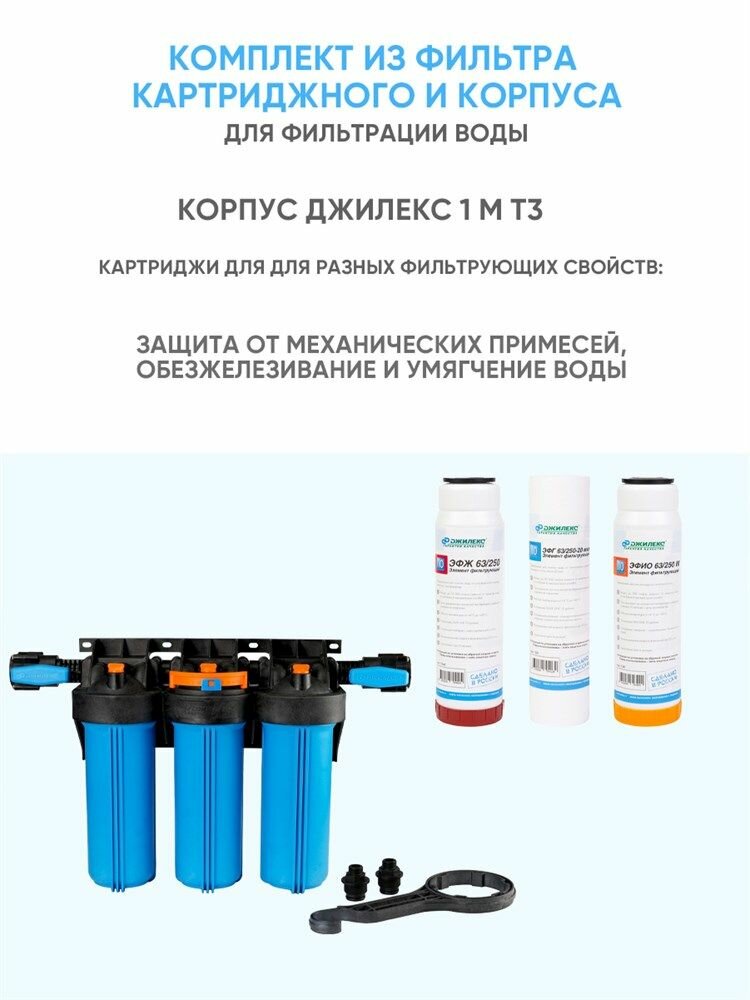 Купить Корпус для картриджного фильтра 1М Т3, колба Slim Line 10", трехступенчатый, Джилекс 9096