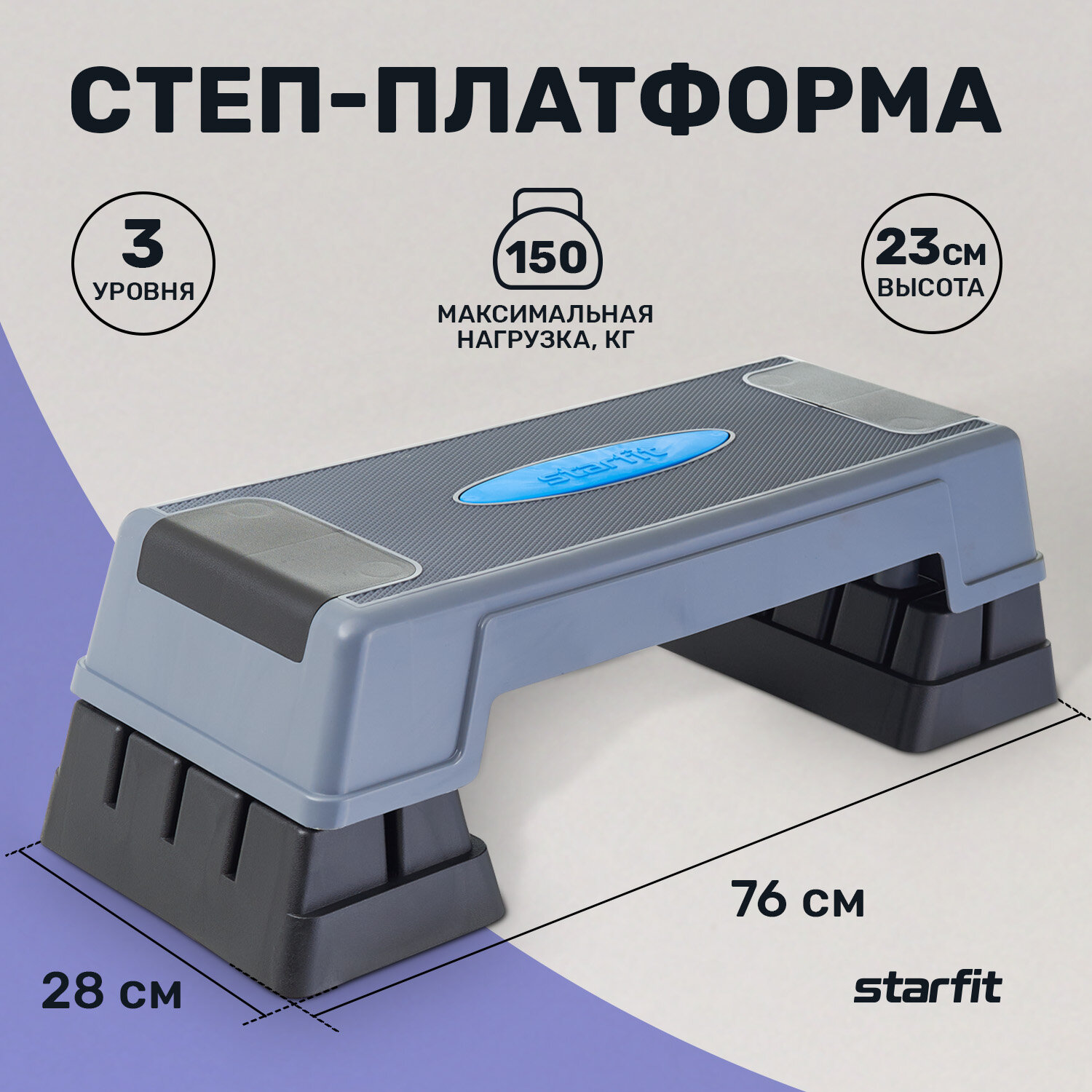 Степ-платформа Starfit трансформируемая SP-301 76х28х23 см, 3-х уровневая