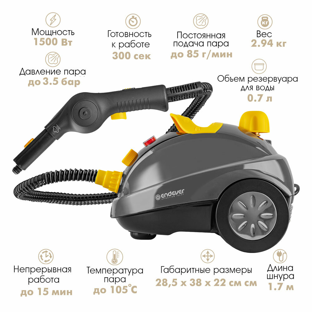 Пароочиститель для дома универсальный Endever Q-808 / 1500 Вт / 3,5 бар