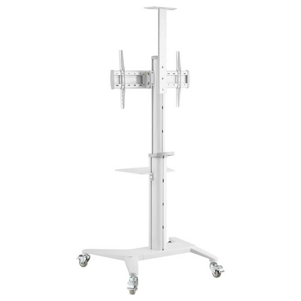Стойка Digis DSM-P764C мобильная для ТВ 37"-70" до 70 кг, VESA до 600x400мм, Алюминий, белая, безынструментальный наклон -12°/+5°, регулировка высоты ТВ и полок для камеры и источников, поворот в портретное положение (90°)