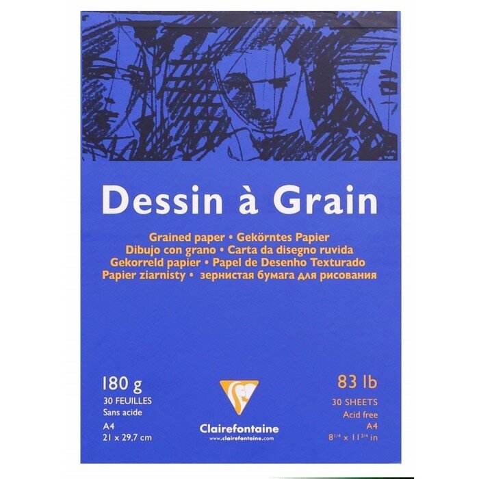 СохранитьБлокнот для зарисовок А4, 30л Clairefontaine "Dessin a grain" (180 г/кв.м, склейка, мелкое зерно) (96624C) интересное: