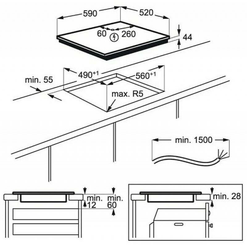 Встраиваемая варочная панель Electrolux Индукционная на 4 конфорки, cтеклокерамика, мощность: 7350 Вт, независимая установка, размеры (ШхГ): 59x52 см