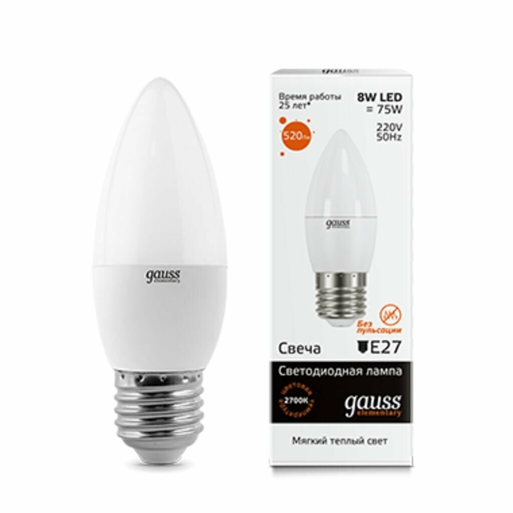 Лампа светодиодная Gauss Elementary Е27 3000К тёплый свет, свеча, 8 Вт интересное: