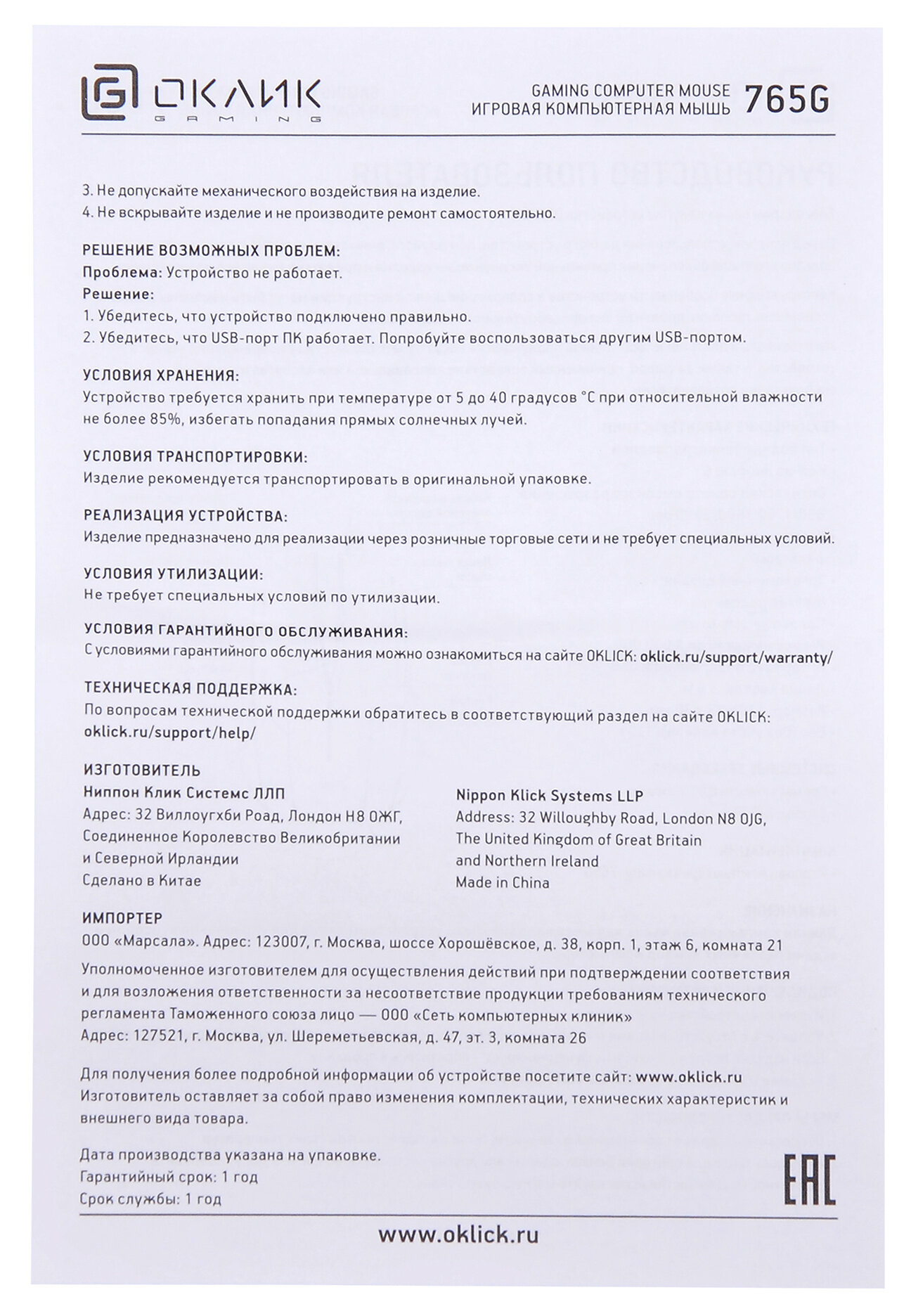 | Производитель | OKLICK |