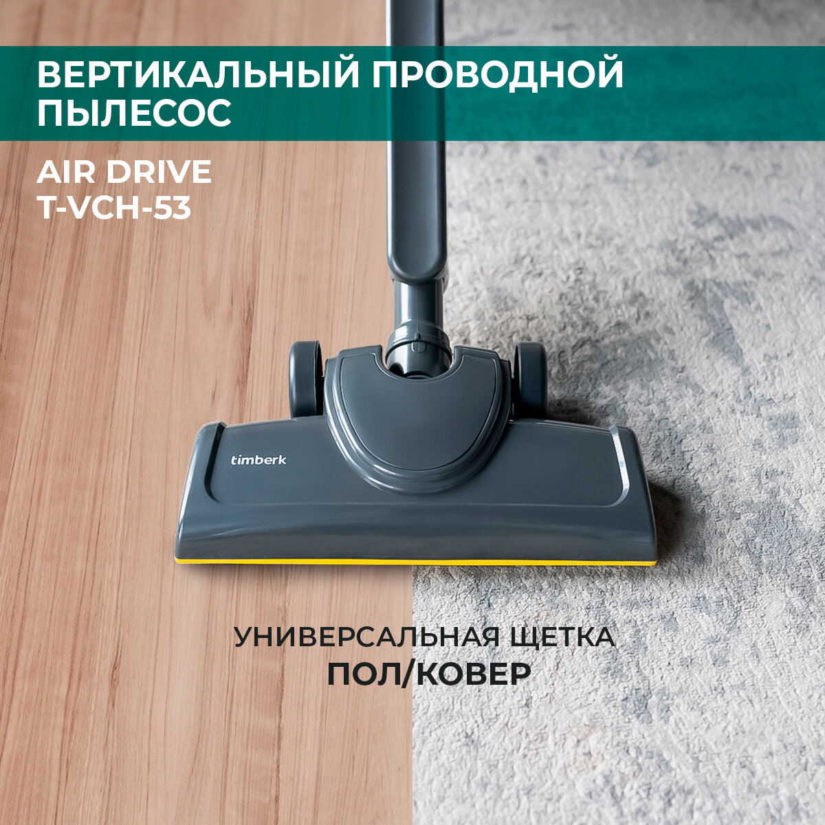 Вертикальный пылесос проводной Timberk T-VCH-53, шнур 7 метров