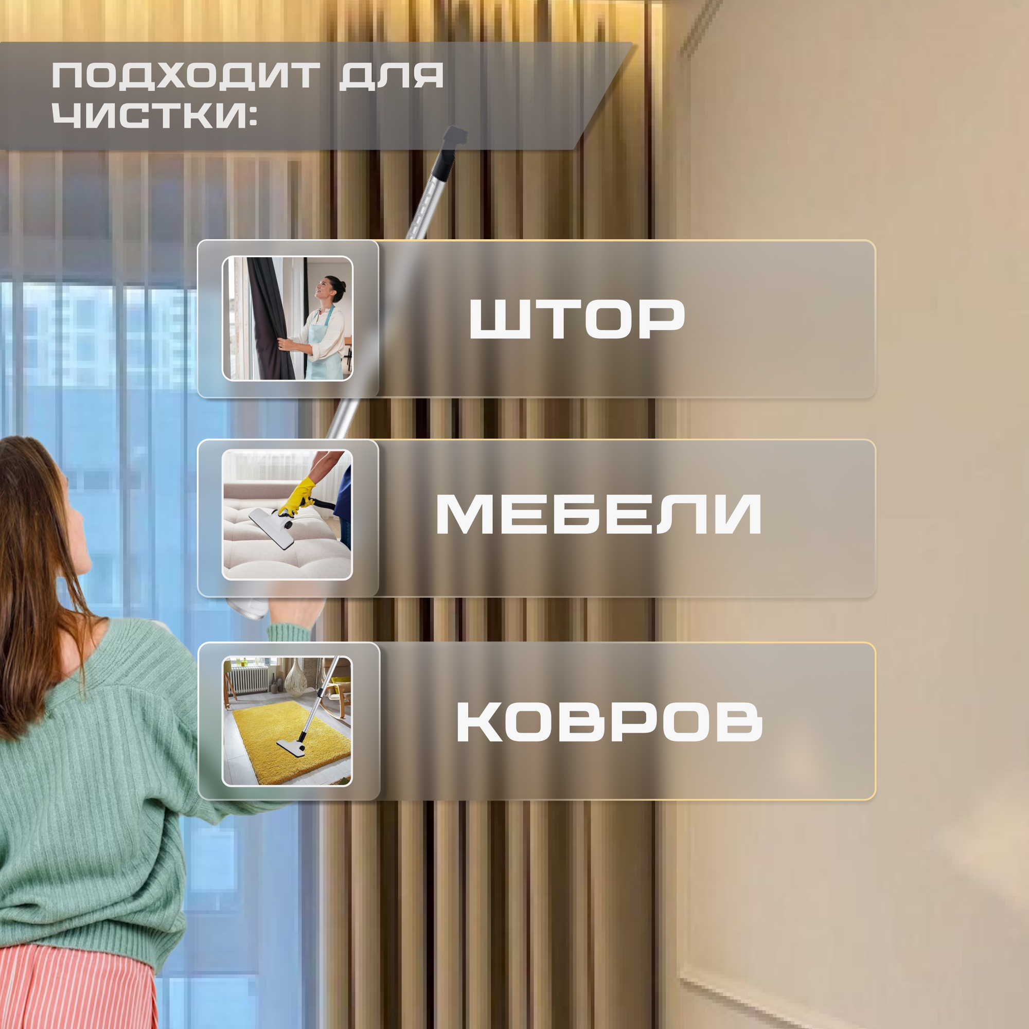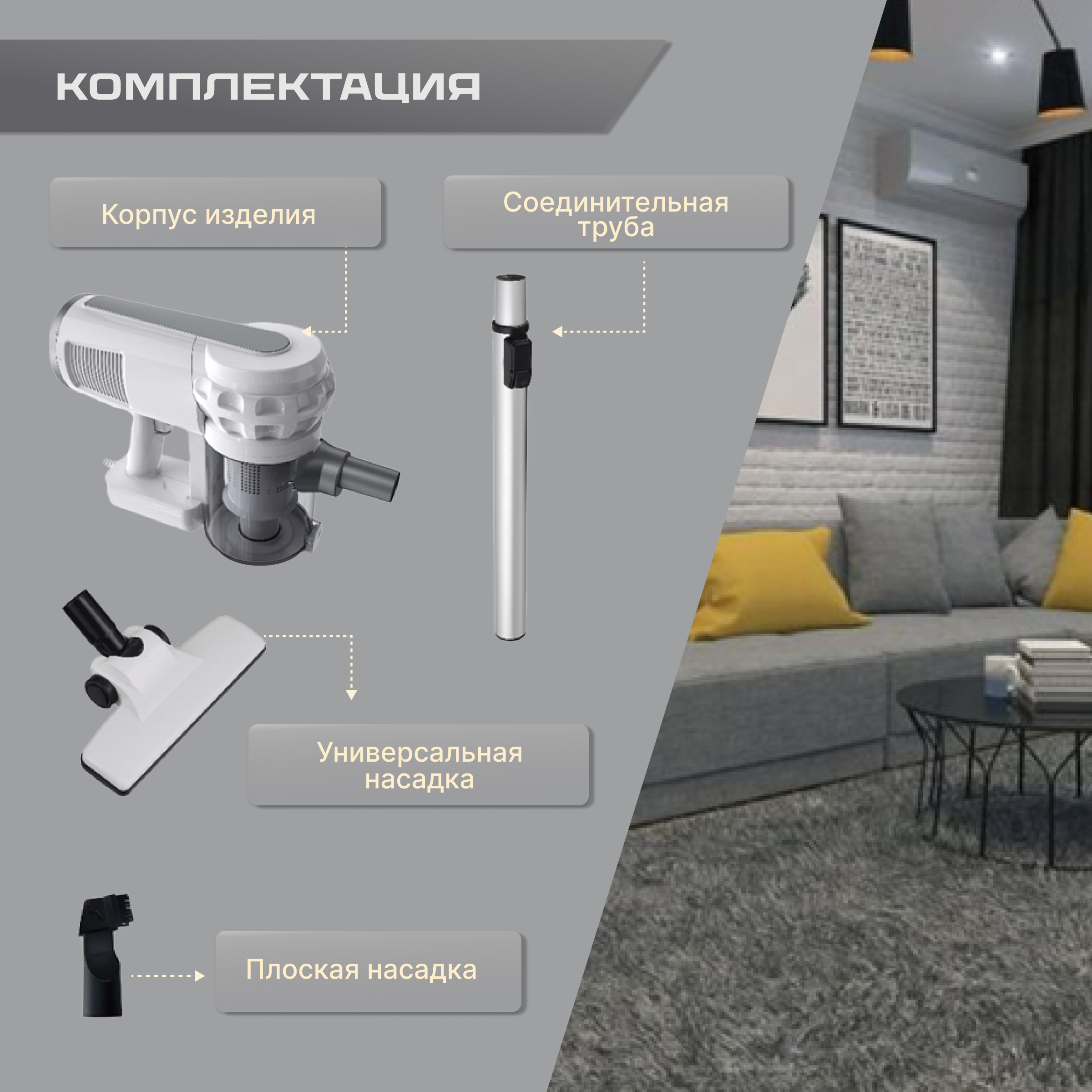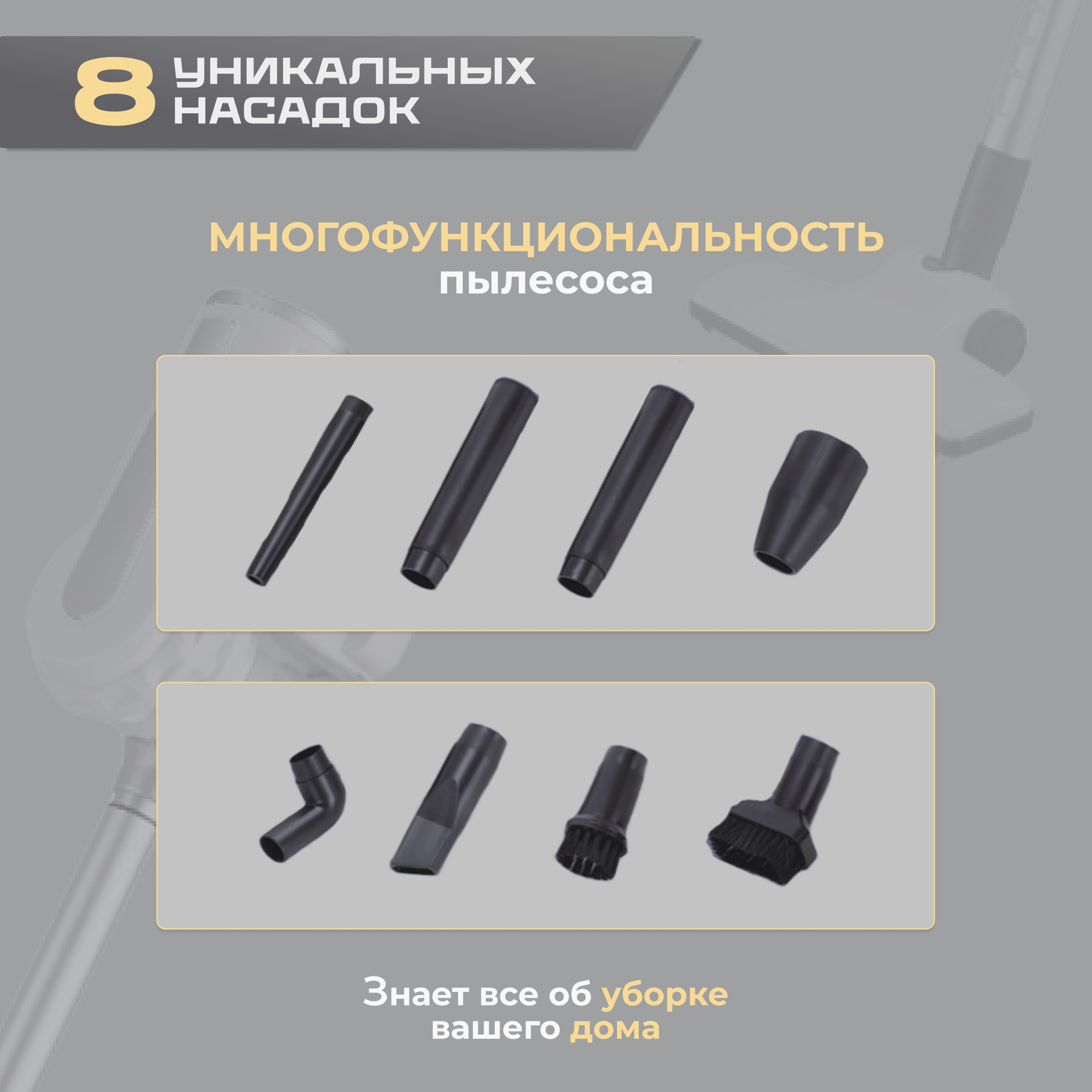 | Дополнительная информация | Модель: XCQ-103. Количество насадок: 10 шт. Аккумулятора нет. Питание: от сети; в розетку. Труба для всасывания: телескопическая. Количество режимов уборки: 1. Тип пылесоса: Пылесос вертикальный для дома 2 в 1; Ручной пылесос; Бытовой вертикальный пылесос. Тип пылесборника: контейнер; без мешка; безмешковый. Напряжение: 220 В. Тип управления: Ручной; Управление на рукоятке; Включается в стандартную розетку. Материал корпуса: пластик; abs пластик. |