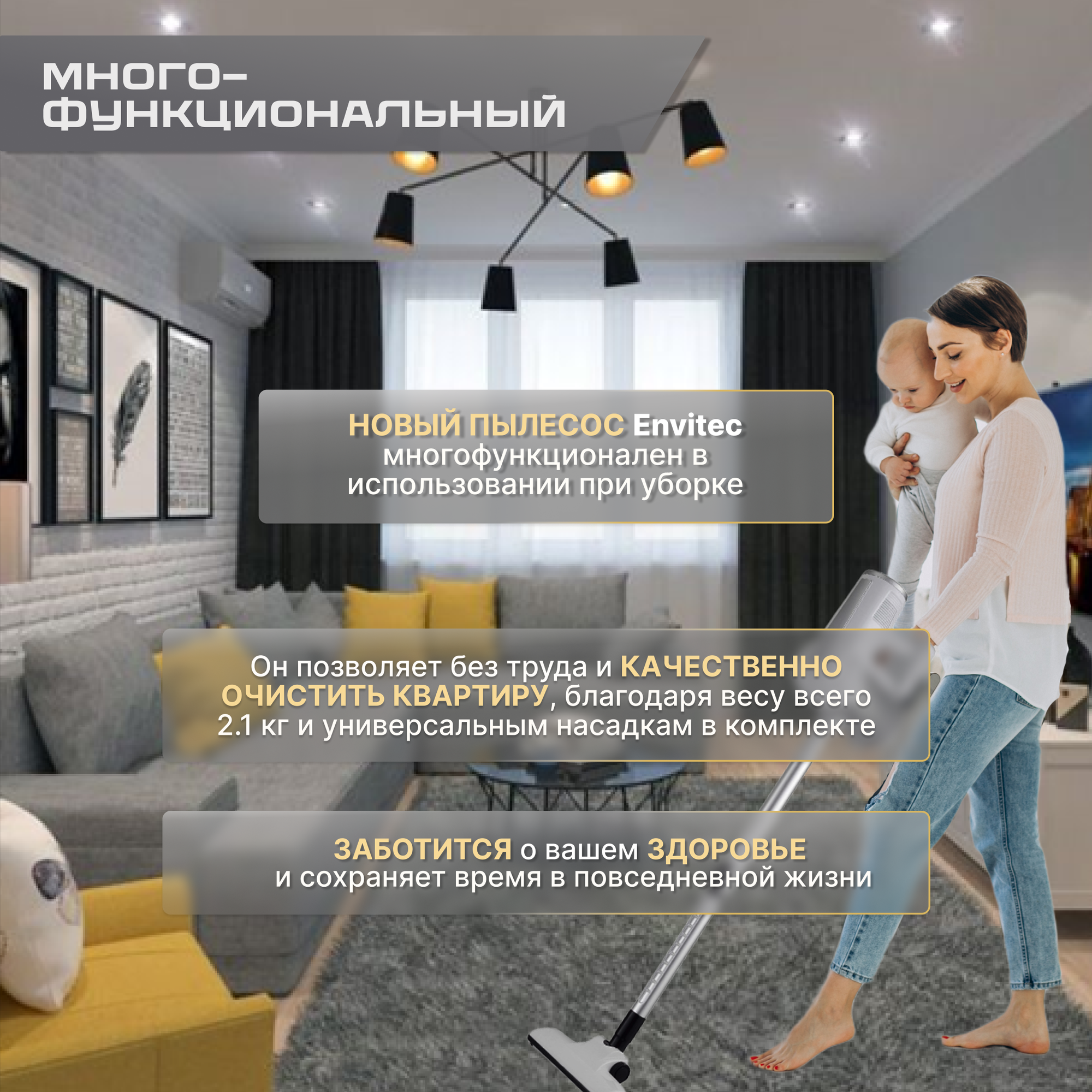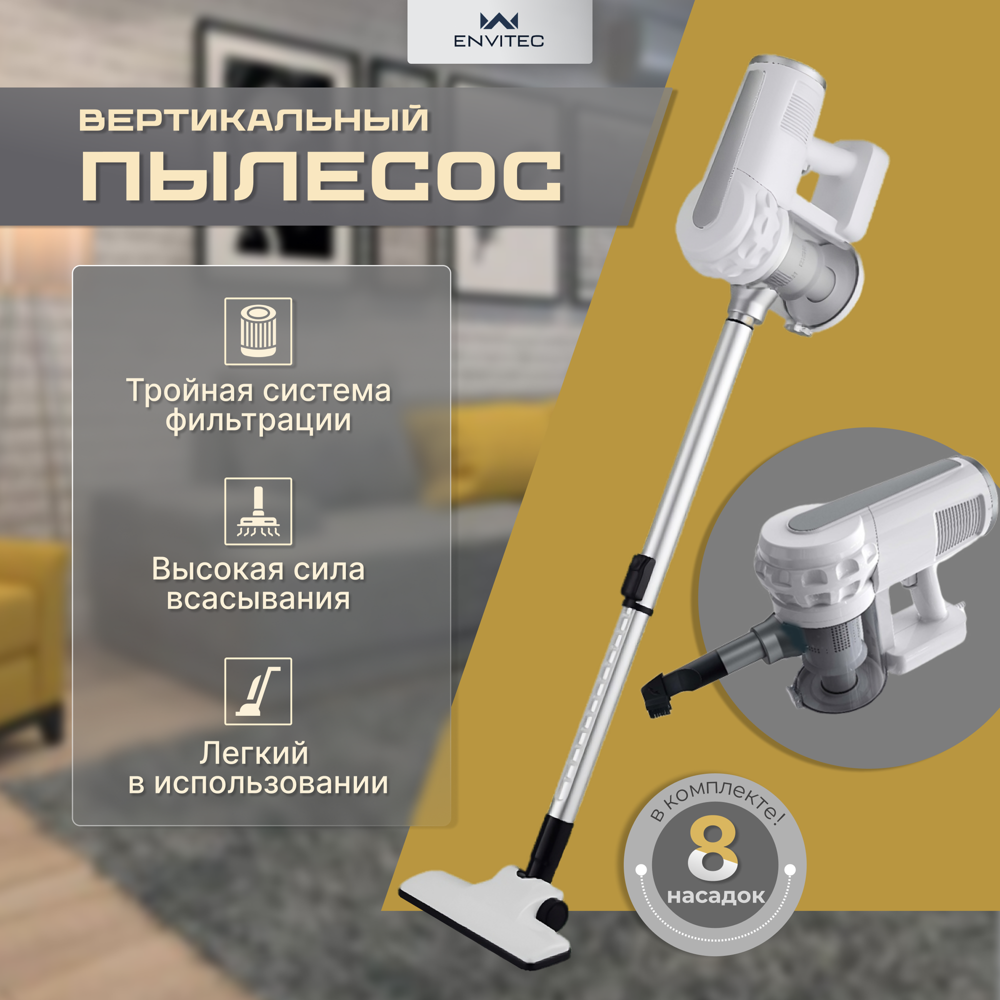 Вертикальный многофункциональный пылесос Envitec интересное: