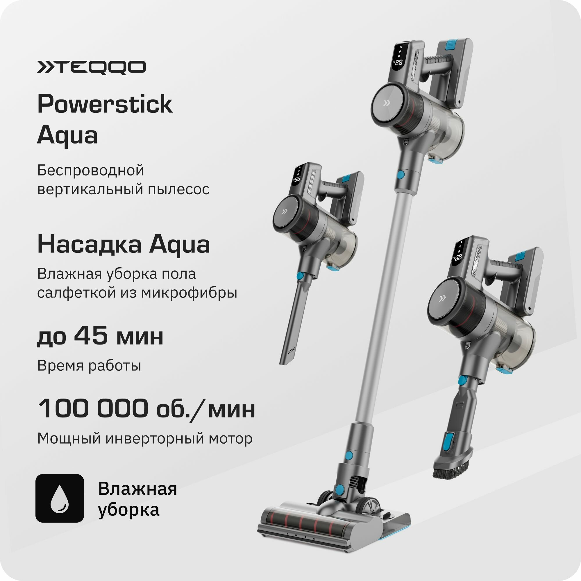 Купить Беспроводной вертикальный пылесос Teqqo Powerstick Aqua