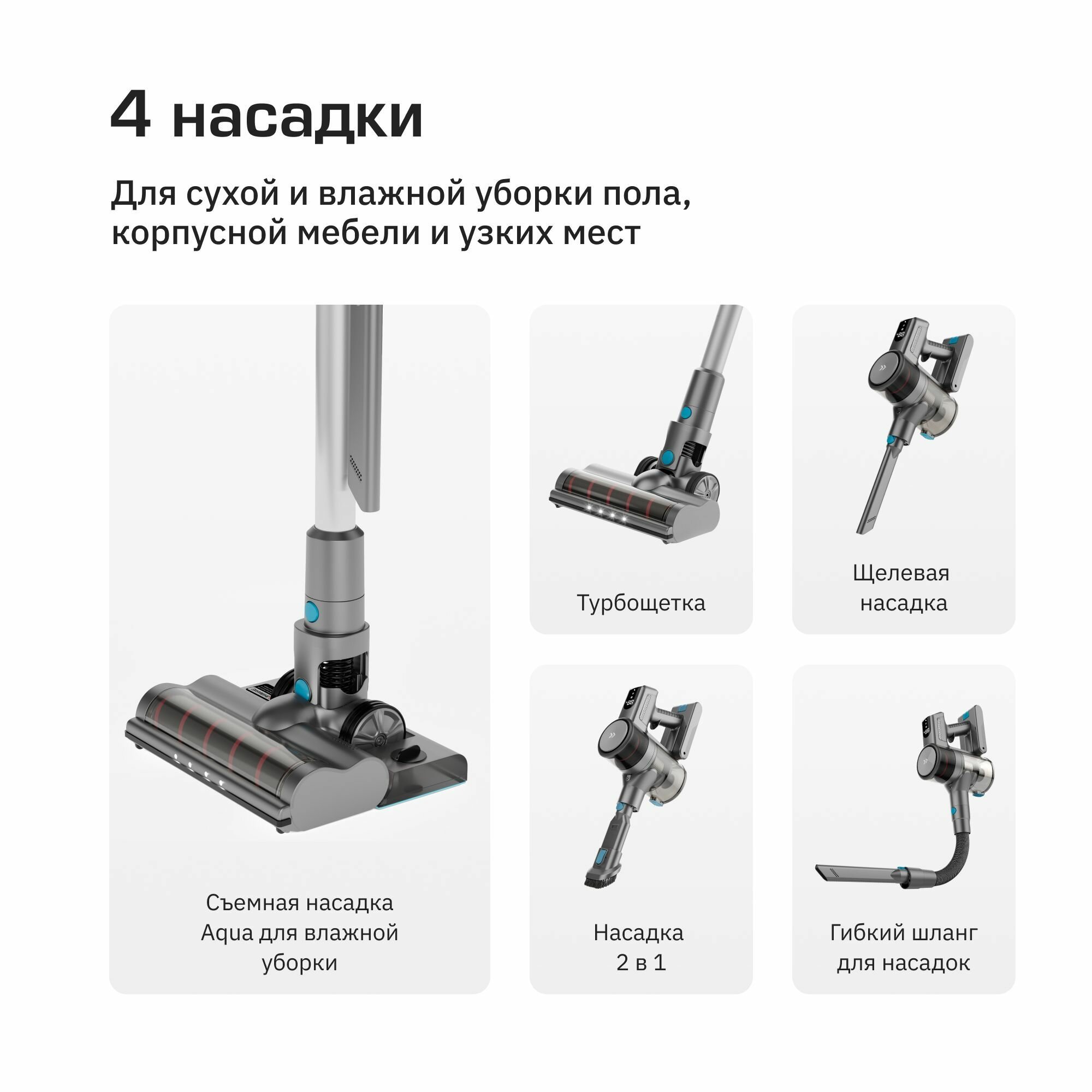 Мощность всасывания (см. коммент) Подставка с тряпкой и водой в комплектации Aqua |