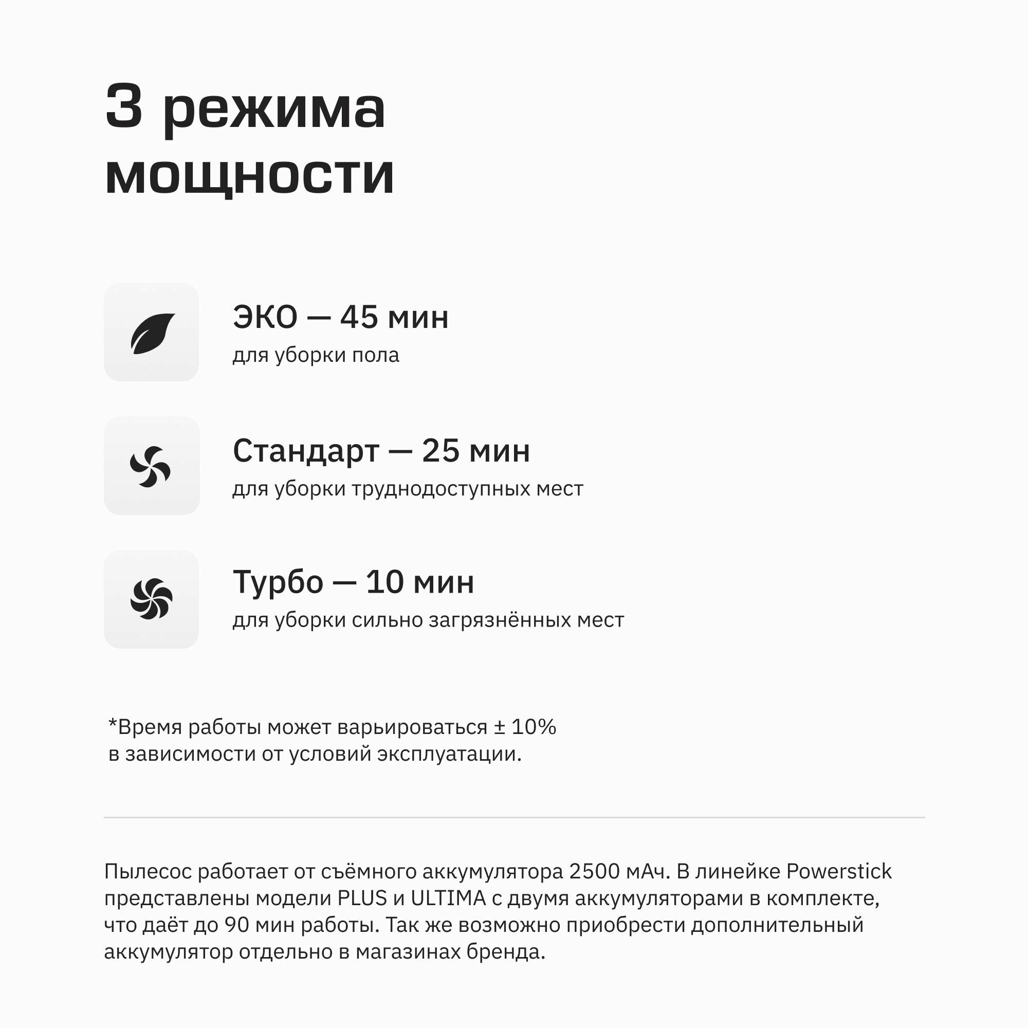 | Минусы: | Малая продолжительность работы в турбо режиме |