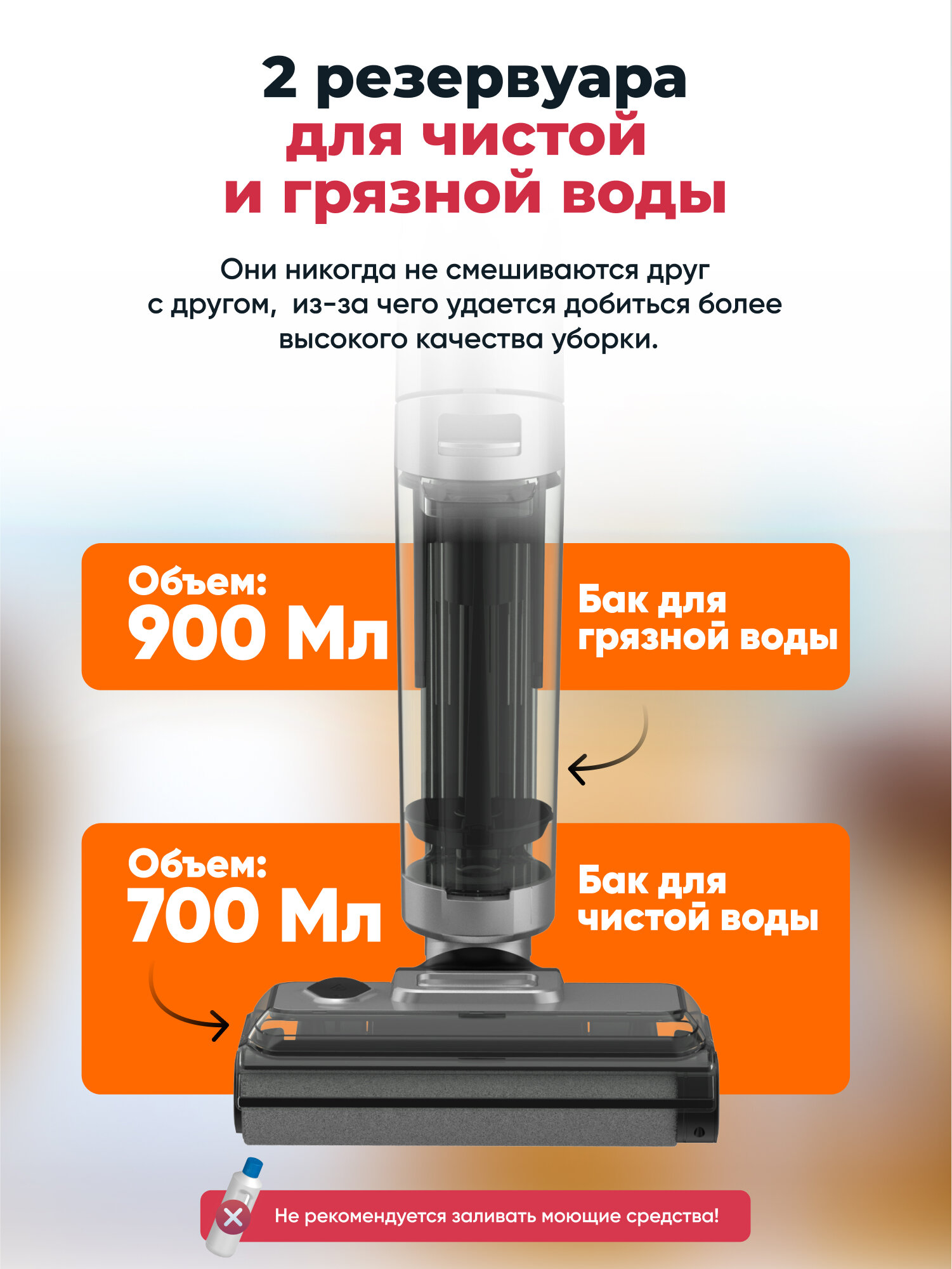 | Минусы: | Небольшой контейнер для чистой воды,не домывает у плинтуса 2 см |