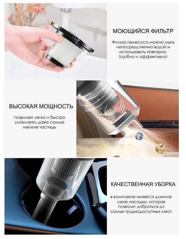 Автомобильный пылесос 2in1 Vacuum Cleaner/ Беспроводной мини пылесос с подсветкой для авто и для дома 2 в 1, черный интересное: